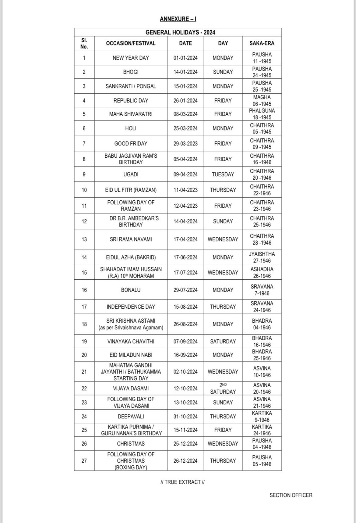 Public Holidays 2024 Telangana Complete list STUDYBIZZ
