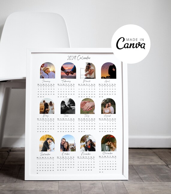 One Page Editable Template 2024 Calendar With Photo, Custom